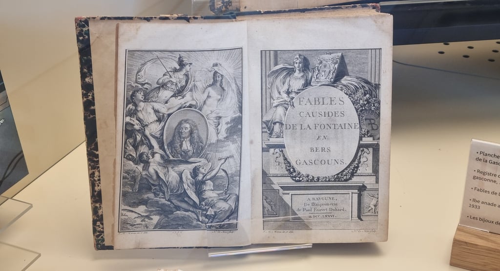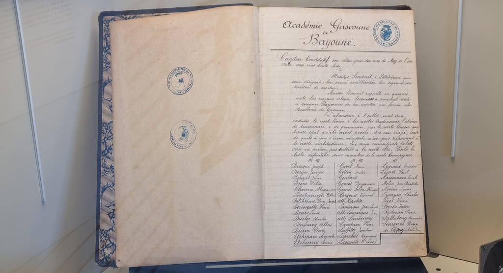 Au parat deu centenari de l'Academia Gascona de Baiona, dinc au 31 de mai, documents inedits provienent deus archius de l'institucion que son expausats au Centre d'interpretacion de l'arquitectura e deu patrimòni (CIAP), nommat Lapurdum, 7 Carrèra deus Governadors. A véder sustot : l'edicion de las faulas de La Fontaine (1776), e la traduccion de l'album de tintin « Las Jòias de la Castafiòra ». Visitas deu dimars au divés de 14h a 18h e lo dissabte enter 10h e 12h30.